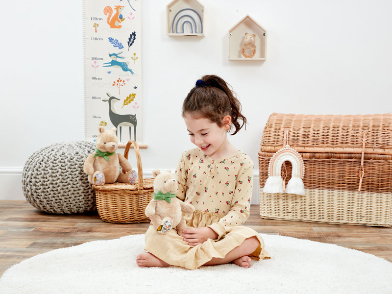 This exquisite Winnie the Pooh Soft Toy makes an adorable heirloom to cherish and is designed to last a lifetime with a focus on sustainable materials, stuffing made produced from recycled plastic bottles and recycled plush fabric.