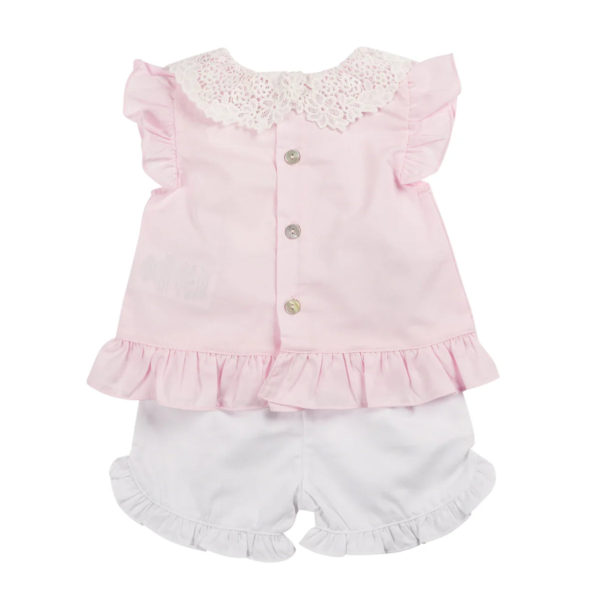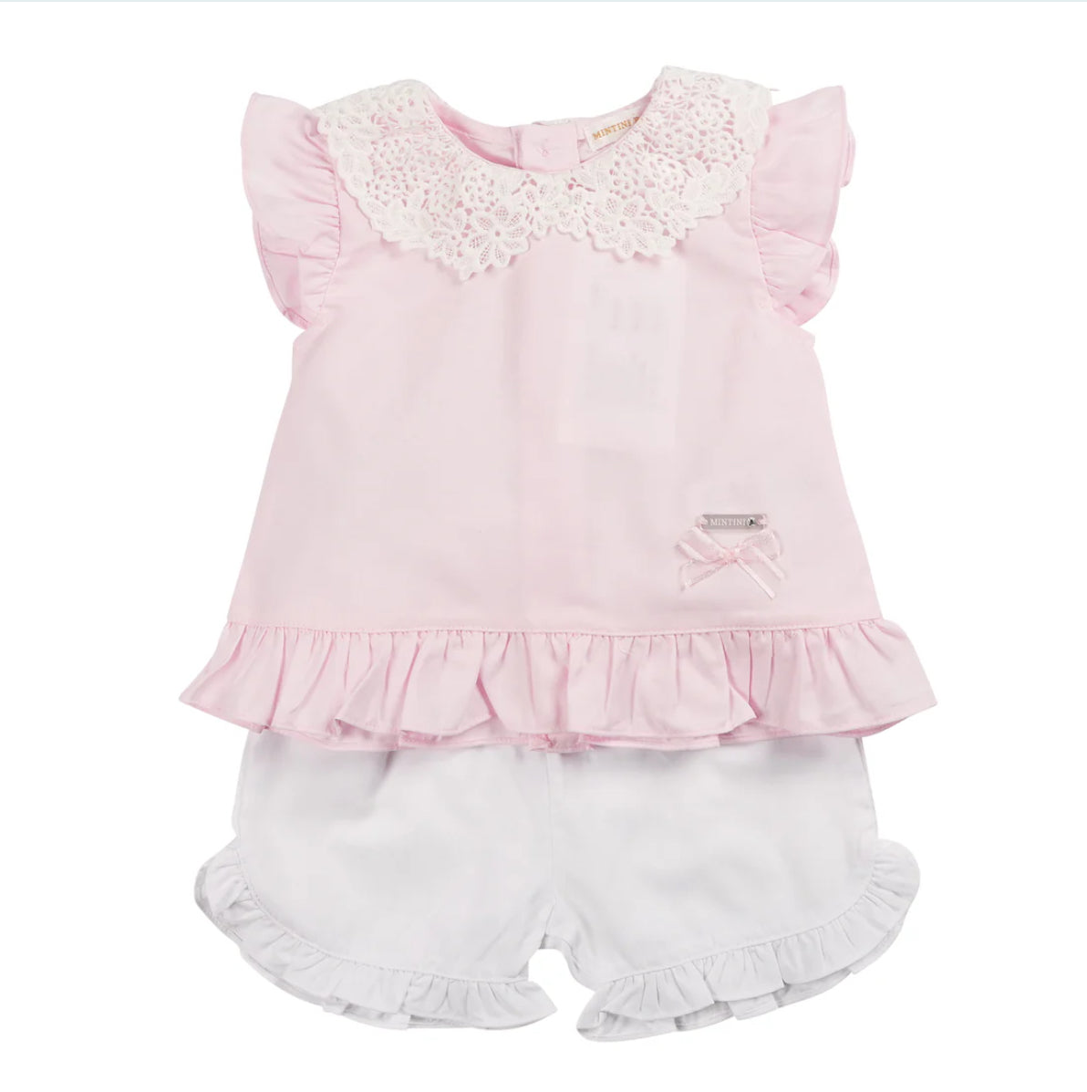 Mintini Pink Broderie Collor Top & Shorts