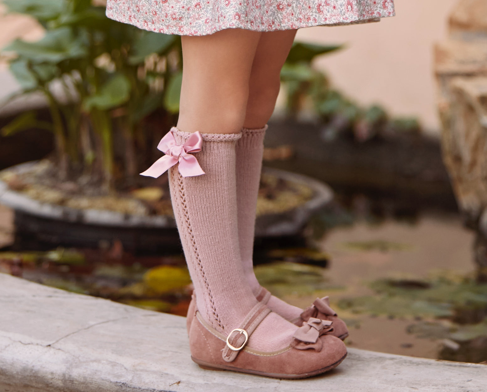 New In Juliana Dusky Pink Knee Length Bow Socks