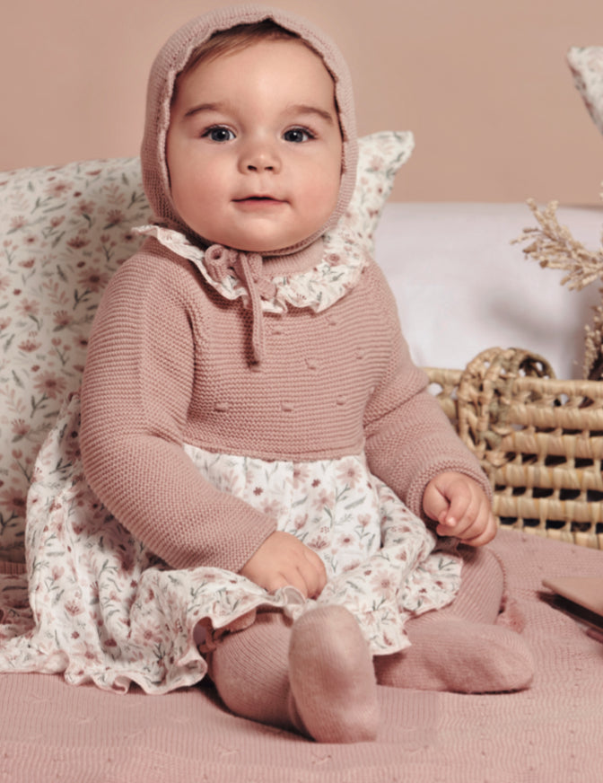 New In Juliana Girls Knitted Raised Dot Body Dress w/ Floral Skirt